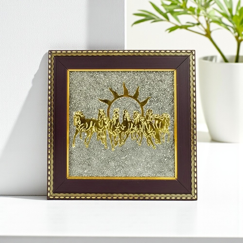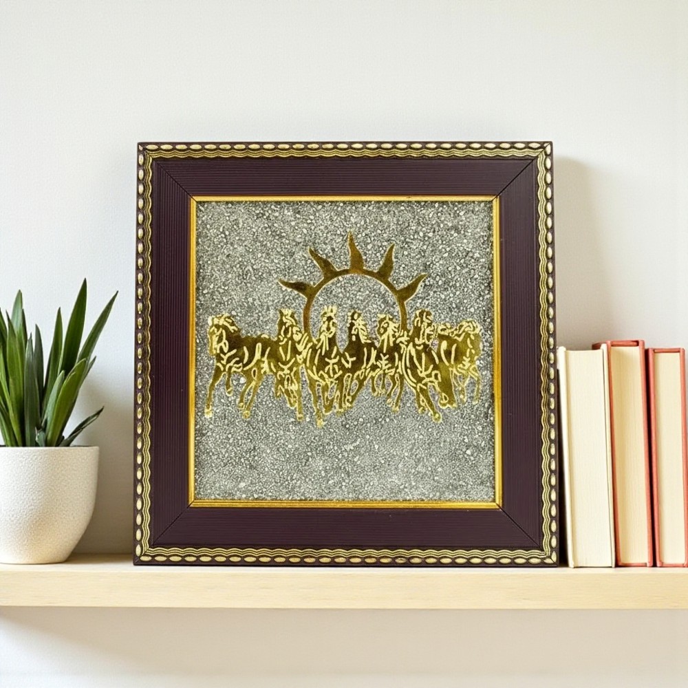 7 Horses on Raw Pyrite Frame is made to bring career growth, fame, and success in your life. With the power of Raw Pyrite crystal along with Surya Dev’s 7 horses, attract wealth, good luck, and prosperity.