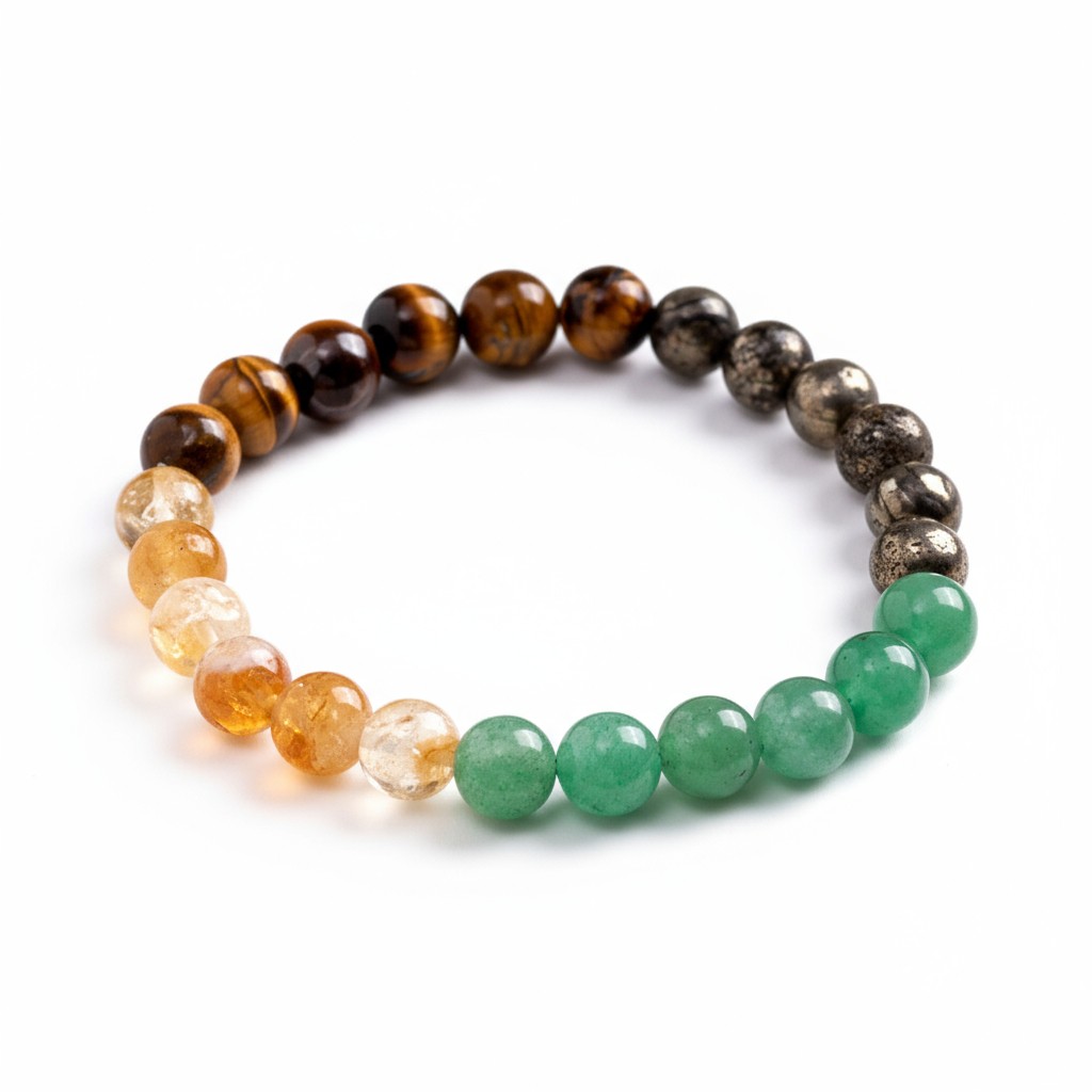 Money magnet bracelet is a combination of pyrite , green aventurine, tiger eye & citrine crystals which promotes good luck & opportunities. It will help in boosting self-esteem & growth in career. Each crystal has the power to attract new opportunities , good luck & positive energy . It also helps in boosting self-esteem & logical thinking.